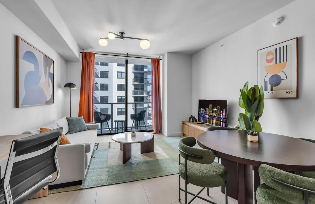 Die Villa Stylish Urban 1Br Downtown Rooftop Pool & Views Miami liegt 5 Fußminuten vom One World Trade Center entfernt und lockt mit einer Sauna, die zum Entspannen einladen.